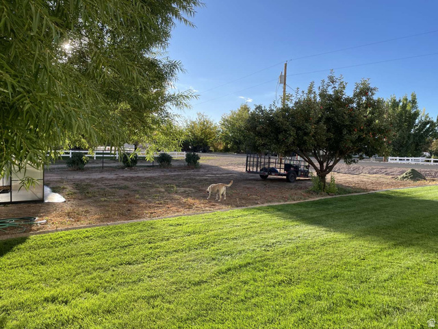 Large home on 1 acre with 1 share of irrigation water. 2810 s.f. plus 1200 s.f. of cemented, well-lit, stair-accessible crawl space. 8' by 40' front porch. 5 large bedrooms, 2 full baths 1 half bath, 2 living rooms, library, laundry room, and large garage. Has 2 furnaces (1 for each level), 2 ac units, on-demand tankless water heater installed in 2025. Home has had radon mitigation. Two gas fireplaces, 2 sun lights, intercom system, plumbed for vac system. Dryer & range are plumbed for both gas and electricity. Kitchen updated in 2020 with custom cabinets and granite counter tops, front entry way updated in 2023 w/ beautiful oak stairs, new carpet throughout. Two security cameras. Large, shady yard with a 10'x12' shed, a green house, and built in fire pit. Producing choke cherries, nanking cherries, current bushes, and apple tree. Large garden area. Room to add a large detached garage. Excellent neighborhood on a quiet street. Zoned for animals. Rural feel, but in town location.