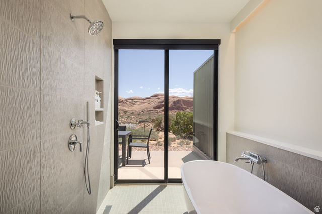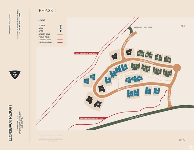 LIONSBACK RESORT An unparalleled experience of discovery and respite. Designed to blend in with its natural landscape, Lionsback Resort offers an unrivaled launchpad for all the adventure, exploration and relaxation Moab has to offer, all while treading lightly on the land. While its 175 acres of land with 70% open space offer a sense of seclusion, Lionsback Resort is a stone's throw away from the City of Moab, so you're never far from community and culture. This timeless 1 story Strata Casita meets sophisticated design, immersing you in the surrounding desert landscape with both indoor and outdoor living. An abundance of large windows gives you the unobstructed views of sunlight reflecting off red rock fins and the sunset alpenglow on the La Sal Mountains. Earthy desert hues from the Fireclay tile backsplash and Italian cabinets are beautifully offset by clean, modern lines from the timeless quartz countertops. Thoughtful design represents the surrounding terrain, all while incorporating high-end finishes, from Wolf and Subzero appliances to a 5-piece spa-like bathroom with wet room, soaking tub and Waterworks plumbing fixtures, to the built-in speaker system with Sonos amp. Offering 2 en suite bathrooms, this luxury home has short-term rental zoning and comes fully furnished and accessorized, including linens, decor, dishware, kitchen wares, televisions, and hot tub. When the wild terrain is calling, Lionsback Resort offers on-site access to the Mill Creek Trail and Hells Revenge 4x4 trail, standing at the gateway of the world-renowned Sand Flats Recreation Area, home of the famous Slickrock Trail, two National Parks, Arches and Canyonlands, and the Colorado River for limitless discovery.