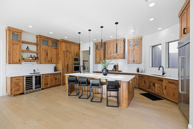 As you are welcomed into your tucked-in private entry courtyard, you will realize that this home is an absolute dream. Recently remodeled, we invite you to come visit, sit back, and enjoy your future estate within the gated side of the Ledges Golf Course of Saint George. With over 3,600 SqFt, the home features 4 bedrooms (each with an ensuite), 4.5 bathrooms, large 4 car garage (almost 1,400 sqft), office, open-floor plan concept with built-in gas fireplace, mantle, and shelves. The large windows and glass sliding doors offer plenty of light to complement the vaulted ceilings. The kitchen features a large sit-in center island, built-in range stove and refrigerator, wine cooler, and hidden large pantry with an appliance counter. The primary is elegantly designed for all comforts with tall windows, shiplap walls, and wet room (shower/soaking tub design) with a raised vanity and a large primary closet. The additional bedrooms with ensuites are all large and with plenty of space for additional guest quarters. One of the guest bedrooms is a casita with a separate entrance with room for a kitchenette. The exterior space has well-manicured landscaping with a pergola perfect for enjoying afternoons. The 0.41 acres offers plenty of room for someone to add a pool or a hot tub. Furniture package available. On the bench above Snow Canyon State Park and just over 10 minutes north of the city of Saint George. This property is also a short drive to some of America's most breathtaking destinations, including Zion National Park, Bryce National Park, and the north rim of the Grand Canyon. Other nearby state parks and national forests include Sand Hollow Reservoir, Gunlock Reservoir, Quail Creek Reservoir, and Dixie National Forest that enhance the allure of the location. With over 300 days of sun, incredible year-round weather, and in the middle of a 7,200 yard par 72 golf course designed by Matt Dye, there is no doubt that The Ledges is one of Southern Utah's best kept secrets. One of the best places to live for those who love the outdoors, biking, hiking, fishing, ATVing, and all other high-desert adventures. All information herein is deemed reliable but is not guaranteed. The buyer is responsible to verify all listing information, including square feet/acreage, to the buyer's own satisfaction.