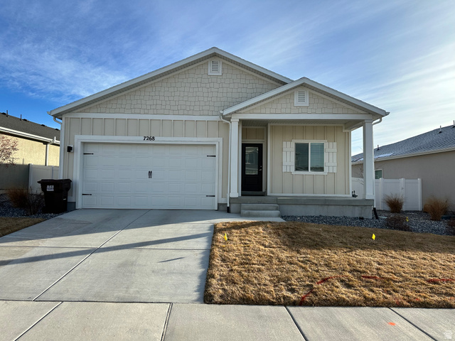 $6,000 lender concession available! Enjoy single-level living in this fully fenced, beautifully landscaped 3-bedroom, 2-bath home in Eagle Mountain. Perfect for downsizers with a private, accessible primary suite, or young families seeking space to grow. Start your mornings or unwind in the evenings on the charming front porch with beautiful open views, or spend quality time in the private backyard - perfect for kids, gardening, or entertaining. Designed for easy living, this well-maintained home provides privacy, open space, and a low-maintenance lifestyle - all with the freedom of a detached home with no shared walls. Whether you're downsizing or raising a family, this is the ideal place to simplify, relax, and enjoy life.