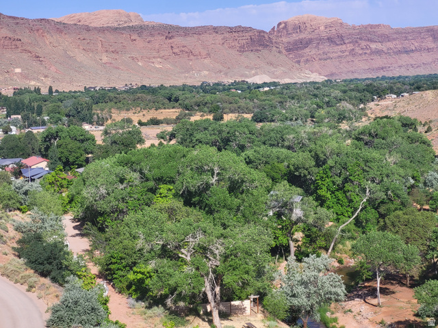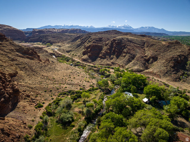 THE DESERT'S RIPARIAN SOUL- From the top of the La Sal Mountain range to these privately owned rugged red cliffs- your palette to explore the writing of the ancients and dream at the base of Moab's Sand Flats Recreation area- the home of Slickrock and other mountain bike trails that make Moab the Nation's Mountain biking mecca lies the Moab desert's crown jewel, Mill Creek. A year-round tributary of the Colorado river, this privately held section of Mill Creek with over 24 acres of land offers over one thousand feet of tranquil running water, under a canopy of seasonal colors from the mighty cottonwood trees, with direct access to the coveted Mill Creek Canyon and endless miles of federally protected hiking trails. A spring, with a deeded water right, flowing at over 60 gallons a minute is sourced and distributed throughout the irrigated portions of the property, supporting the old growth and new growth of indigenous trees and shrubs. Finished in 2021, a contemporary 2-bedroom, 1,200 square foot home on two levels with an infinity edge wrap around deck is anchored into the bedrock ledge directly above the creek and flowing spring water. The home features granite counter tops, floor to ceiling windows, knotty pine finish, natural slate tiled floors with luxurious radiant heating, and has been situated and designed for a larger expansion, should you desire. The extreme privacy will empower you to forget that the City center is only moments away and you are secluded, but not left without convenience. The land consists of four separate tax parcels all with access to all municipal services which allows for multiple options to build additional homes, enlarge either of the two existing homes, or expand your estate. The manicured riparian forest, with over 300 mature shade and fruit trees of 17 different species, hosts a lush habitat for birds and wildlife. The property also offers a charming farmhouse, perfect for your guests or a caretaker. Under the trees, within the harmony of the water, just 1 mile from Moab's city center, will allow you to live at the edge of the desert's riparian soul.