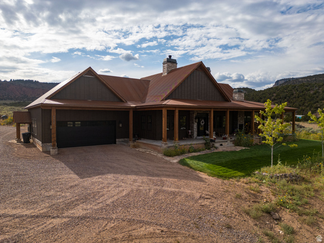 Welcome to the iconic Wolf-Raven Ridge. Inspired by the timeless architecture of Jackson Hole, this Dry Fork Canyon estate is more than a home-it's an experience. From the moment you enter Dry Fork Canyon, there's a sense you've arrived somewhere extraordinary, where mountain air mixes with the scent of pine and the views open wide to the Sawtooth backdrop with wilderness stretching out in every direction, surrounded by the vastness of National Forest and BLM lands. Set on over eight acres, the property blends privacy and freedom with a level of craftsmanship and detail that can only come from a fully custom build. The approach begins at the covered porch framed by Amish-crafted timbers, and inside you're welcomed by soaring 20-foot vaulted ceilings, knotty alder beams and cabinetry, and fireplaces anchored with stones hand-selected from Ashley National Forest. Every space has been designed not just to impress but to create moments of connection and comfort, from the chef's kitchen with Sub-Zero fridge, Caf Series appliances, custom copper-trimmed hood, hidden walk-in pantry, and pine tongue and groove accents, to the subtle glow of hidden lighting and the discovery of a secret bookcase hutch. The master suite is its own retreat with a freestanding tub, steam shower, and custom built-ins, while the home's systems quietly deliver efficiency and reliability with dual heat pumps, 95%+ furnaces, tankless water, and a 1,000-gallon propane supply. Step outside to a stamped patio for evenings under the stars, a 2,000 square foot insulated shop with pass-through garage doors, and grounds that include horse facilities, a chicken cabin, gardens, and groomed walking trails. Wolf-Raven Ridge is a property that makes a statement yet feels deeply personal-crafted with integrity, rooted in vision, and set in a location that simply cannot be replicated. Nothing like it has ever been offered in the Uinta Basin, and nothing else will capture your imagination in quite the same way.