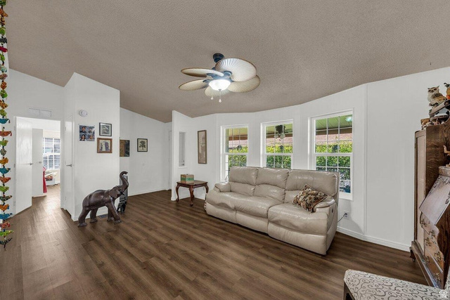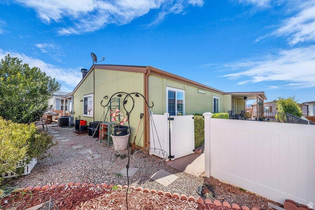 Step into this beautifully maintained home, where vaulted ceilings and thoughtful design create a bright and inviting atmosphere. Generously sized bedrooms and a spacious primary suite with a dual vanity, shower and tub combo, and a large walk-in closet make everyday living a delight. The open living area features LVP flooring and a real wood fireplace, perfect for cozy evenings. The kitchen is a chef's dream with a big corner pantry and newer appliances, complemented by ample storage throughout, including a large linen closet and coat closet. Outside, enjoy a fully fenced yard ideal for pets and two large storage sheds, one of which is heated and air-conditioned. Located in a fantastic community, you'll have access to the clubhouse, pool, and spa, while nearby shopping, groceries, and scenic walking trails add everyday convenience. Buyer to verify all information, deemed reliable, however buyer to verify all info including utilities, rental restrictions, and HOA information if applicable.