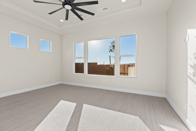Stunning Views! Wake up to sunrise lighting the mountains and wide-open skies--elevated above the neighborhood on a premier corner lot. This custom home is part of the exclusive Builder's Reserve, the final phase of Zions Gate Estates. Oversized windows frame the scenery and flood the home with natural light, while evenings are made for the covered patio and gas fire pit. Inside you'll find floor-to-ceiling kitchen cabinetry, designer finishes, spacious rooms, and striking tilework. Pre-wired for hot tub and RV. The 24' deep garage fits a full-size 4-door pickup. No HOA. One-year builder warranty. Seller is a real estate licensee.