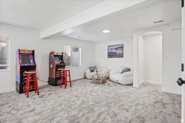 Large recently remodeled 5 bedroom, 3 bathroom rambler located in The Ranches of Eagle Mountain, backing directly to the 18th hole of The Ranches Golf Course. The home offers single-level living with a main floor primary suite, two additional bedrooms, and laundry all on the main level. The home has been fully updated with new luxury vinyl plank flooring, new carpet, and fresh interior paint. The kitchen has been remodeled with quartz countertops, new cabinetry, upgraded appliances, and a gas range. The layout provides an open main living area with lots of natural light. The finished basement includes a large family/entertainment room, two additional bedrooms, a full bathroom, and a separate bonus room that could be used as a workout space, office, or craft room. Extras includes two furnaces, smart thermostats, EV plug in the garage, and a water softener system. The yard features low-maintenance xeriscape landscaping, a gazebo, and extra parking space in addition to the garage. The land behind the fence all the way to the 18th hole is available for purchase from the city. Located near parks, schools, and golf course amenities with convenient access to the main Eagle Mountain corridors. Square footage figures are provided as a courtesy estimate. Buyer is advised to obtain an independent measurement.