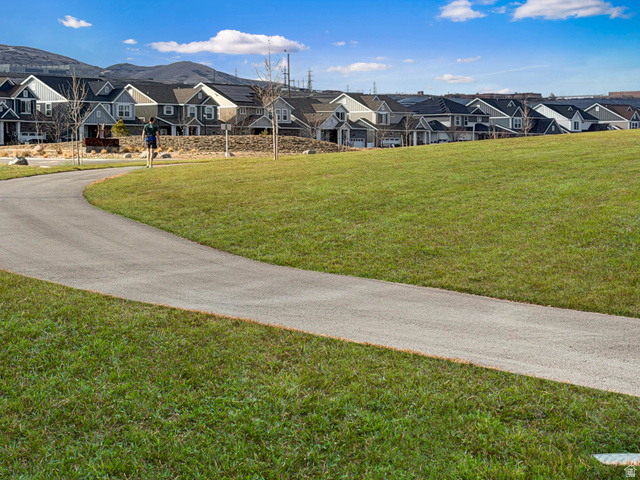 Located in the highly desirable Holbrook Farms community in Lehi, this beautifully maintained single-family home offers the perfect blend of modern, Scandinavian, and traditional design with exceptionally low-maintenance living. The open floor plan features 9-foot ceilings on the main level, a welcoming formal living room, and bright, connected gathering spaces ideal for everyday living and entertaining. The classic white kitchen is both stylish and functional, showcasing quartz countertops, stainless steel appliances, an efficient corner pantry, and a large center island perfect for hosting family and friends. The kitchen flows seamlessly into the dining area and spacious great room, creating a natural hub for gathering. Stylish black metal railings accent the staircase leading upstairs, where you'll find three bedrooms, including a romantic primary retreat with soaring vaulted ceilings and a private outdoor balcony. The spa-inspired primary bath offers a dual vanity, separate tub and shower, and a generous walk-in closet. For added convenience, the laundry room is also located upstairs near the bedrooms. The finished lower level provides a gigantic additional family room and bathroom, with space that could easily accommodate a fourth bedroom if desired. A convenient drop zone just inside the garage provides the perfect place for shoes, coats, and daily essentials. The home is nestled within the 680-acre Holbrook Farms master-planned community featuring a spectacular 33-acre park with a playground, outdoor ping-pong, picnic pavilions, cornhole, off-road cycling trails, sledding hills, multiple pickleball courts, and scenic walking paths. In addition to the main park, a clubhouse, swimming pool, and additional playground are located directly across the street from the home. Perfectly positioned for convenience, this property offers quick access to Thanksgiving Point, Traverse Mountain Outlets, and the Silicon Slopes tech hub. Style, comfort, and thoughtful design come together in this exceptional home, lovingly maintained by the original owners.