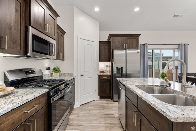 The Perfect Start: Vaulted Ceilings & Solid Surfaces! This 2020-built upgraded residence in Zions Gate Estates offers an inviting atmosphere for those looking to plant roots in a perfect location. Designed with a seamless flow, the open floor plan is anchored by a kitchen featuring granite countertops and stainless steel appliances, making it a natural gathering spot for friends and family. High vaulted ceilings enhance the sense of space, allowing natural light to fill the main living areas. The home's layout includes three bedrooms and two bathrooms, providing a practical and private retreat. Outside, the property is situated on a great 0.10-acre lot with trailer parking, sandbox I have plenty of room for a shed. Located just minutes from local shopping, offering daily convenience alongside easy access to the community's schools and services. This is a great opportunity to own a modern, move-in-ready starter home in a well-established neighborhood.